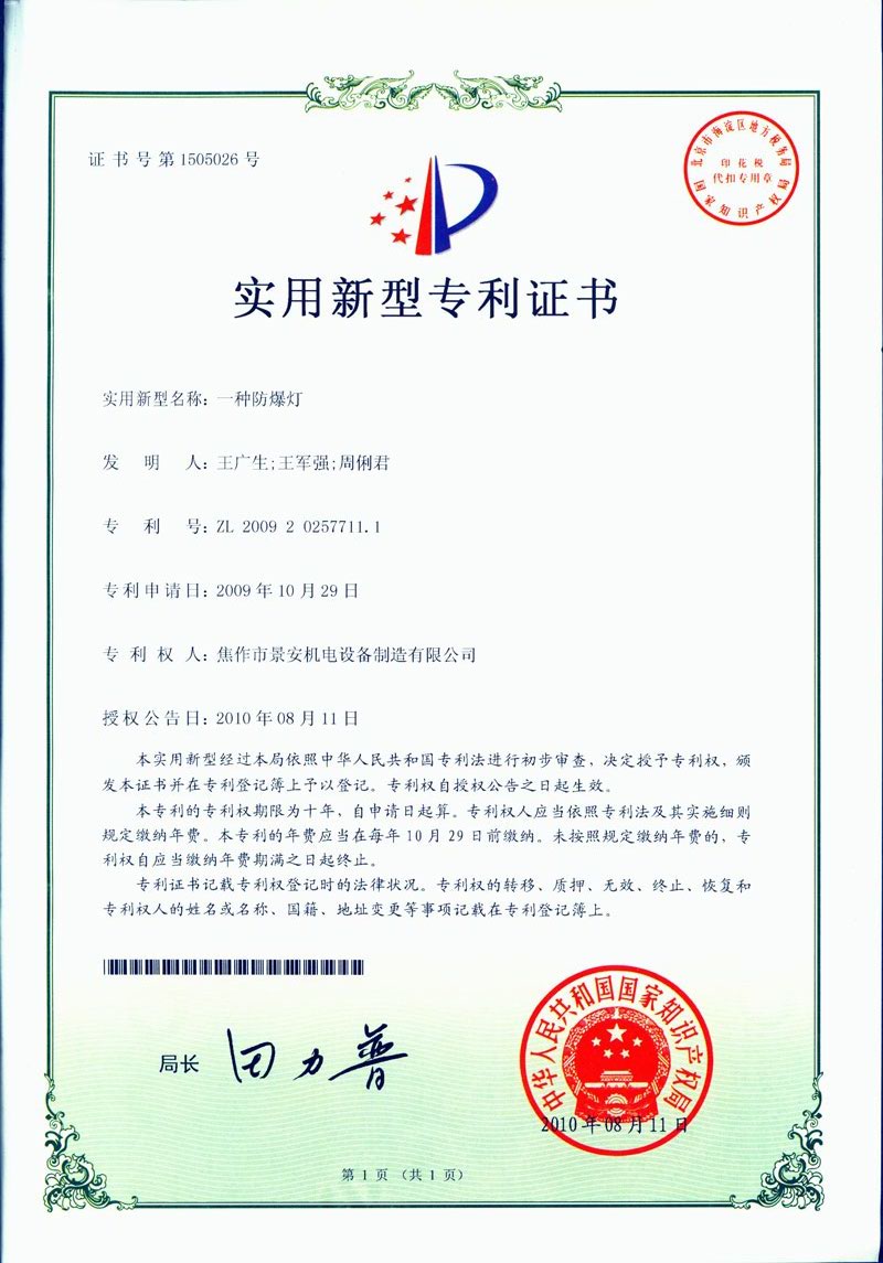焦作景安公司始終堅持“以科技為先導,以市場為導向”的發展戰略,不斷進行新產品的研制和開發,在國家“六五”到“九五”期間,承擔和參與了國家多項科技攻關項目,產品的技術和質量一直處于全國同行業領先位置。并被中國電器工業協會評定為“質量可信產品”。特別是在礦用防爆燈領域,礦用隔爆型半導體(LED)照明燈具,2008年列入國家火炬計劃,獲2009年河南省工業和信息化廳的科技成果二等獎,并擁有多項國家專利。
